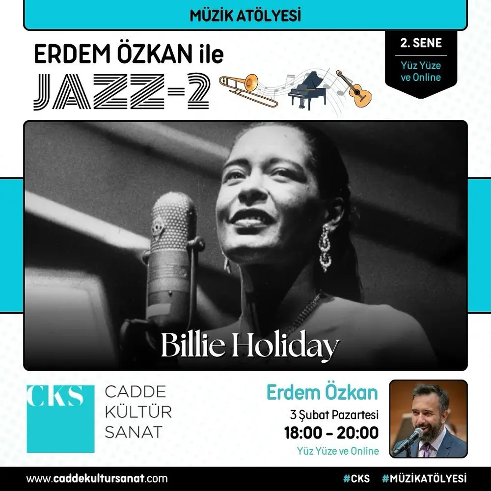 Etkinlik Konusu | Erdem Özkan Jazz 2. sene atölyemizde 3 Şubat Pazartesi 18:00-20:00 saatleri arasında sanatçı "Billie Holiday"i işleyeceğiz. Caz müziği ile ilgilenip, belli bir seviye üstünde bilgisi olan yeni katılımcıları da bekliyoruz. |