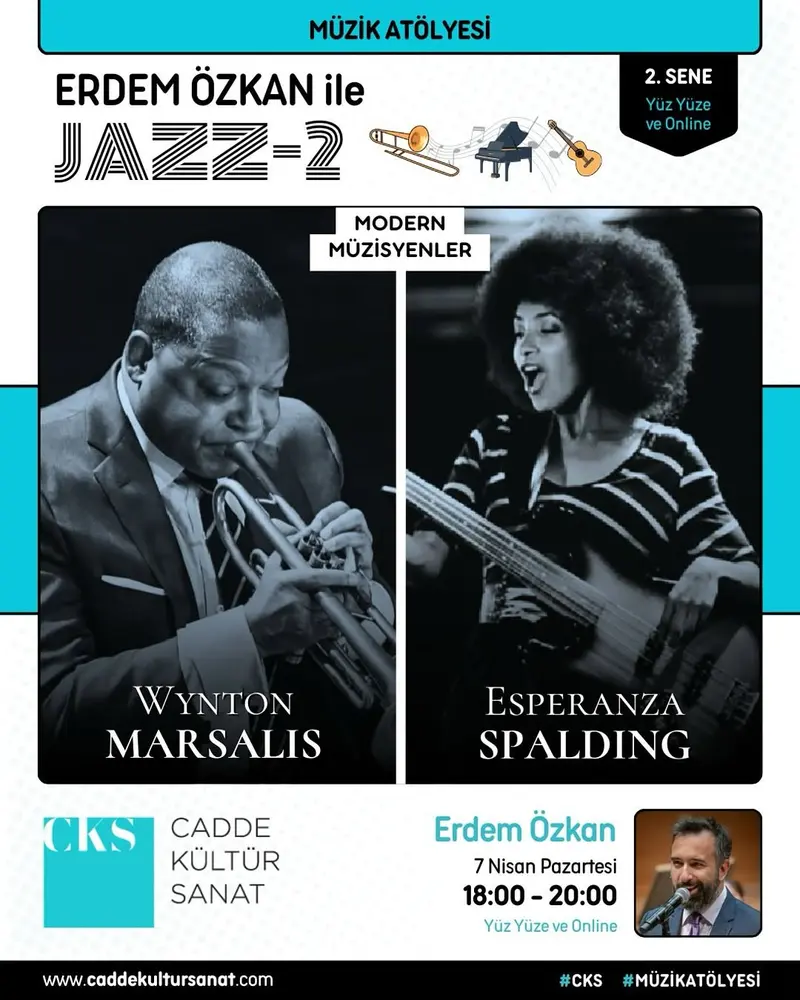 Etkinlik Konusu | Erdem Özkan Jazz 2. sene atölyemizde 7 Nisan Pazartesi 18:00-20:00 saatleri arasında sanatçı "Modern Müzisyenler" konusunu işleyeceğiz. Caz müziği ile ilgilenip, belli bir seviye üstünde bilgisi olan yeni katılımcıları da bekliyoruz. |