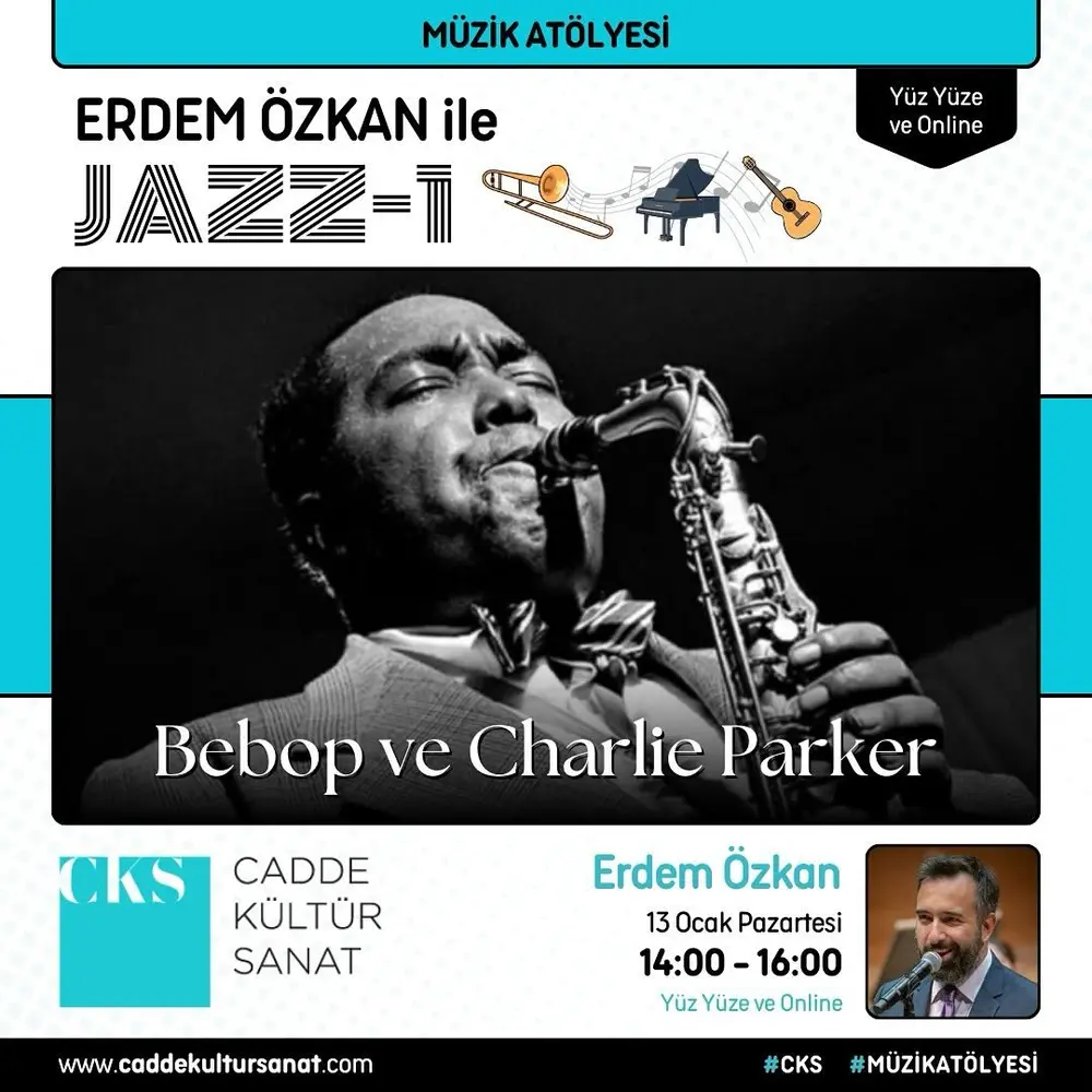 Etkinlik Konusu | Erdem Özkan ile Yeni Başlayanlar için Caz atölyemizde 13 Ocak Pazartesi günü "Bebop ve Charlie Parker" işleyeceğiz. Her Pazartesi 14:00-16:00 saatleri arasında caz müziği ile dolu yeni bir dünya sizi bekliyor.Kayıtlarımız devam ediyor. Seminerlerimiz yüz yüze ve online olarak gerçekleşmektedir. Tüm atölyelerde kayıt alınmaktadır. |