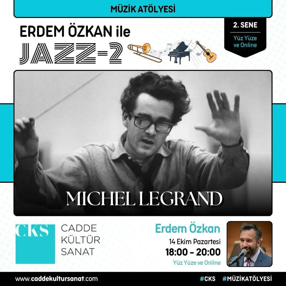 | Etkinlik Konusu | 14 Ekim Pazartesi 18:00-20:00 saatleri arasında "Michel Legrand" işleyeceğiz. Caz müziği ile ilgilenip, belli bir seviye üstünde bilgisi olan yeni katılımcıları da bekliyoruz. |