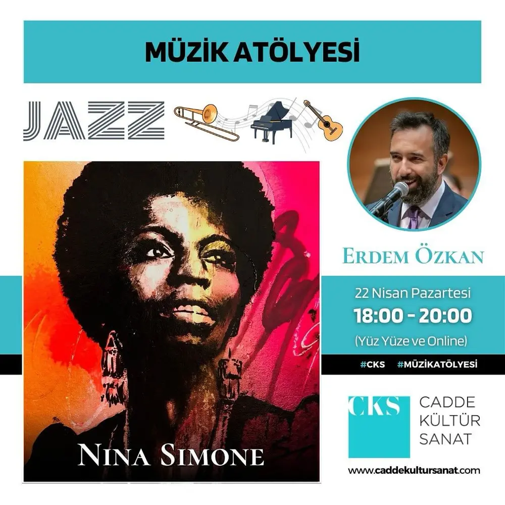 | Etkinlik Konusu | Erdem Özkan ile Yeni Başlayanlar için Caz atölyemizde 22 Nisan Pazartesi günü Nina Simone işleyeceğiz. |