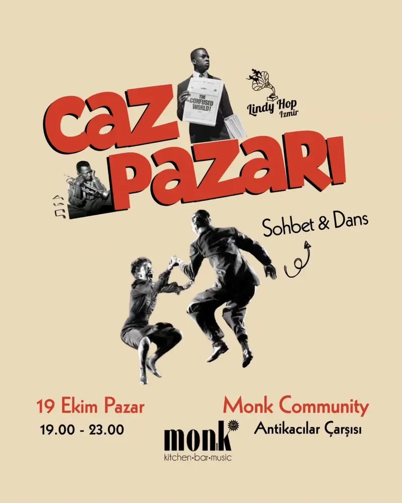 Etkinlik Konusu "Nedir ?" konseptli sohbet ve dans etkinliğimizle yeniden bir aradayız! “CAZ nedir?” sorusuyla başlayıp "SWING nedir?", “KÜLTÜR nedir?” ile ilerleyen sohbetlerimiz “KOMÜNİTE nedir?” sorusu ile devam ediyor! Sohbet interaktif olacak. Bu sebeple tüm dans camiasının katılımını çok önemsiyoruz. Birlikte neyi başarabildiğimiz kadar neyi başaramadığımızı da konuşacağız. Buyurun sohbete. Sohbet sonrası güne Monk'un harika atmosferinde sosyal DANS PARTİSİ ile devam edeceğiz. Caz müziğini ve dansını seven / merak eden herkes davetlidir. Katılım ücretsizdir.