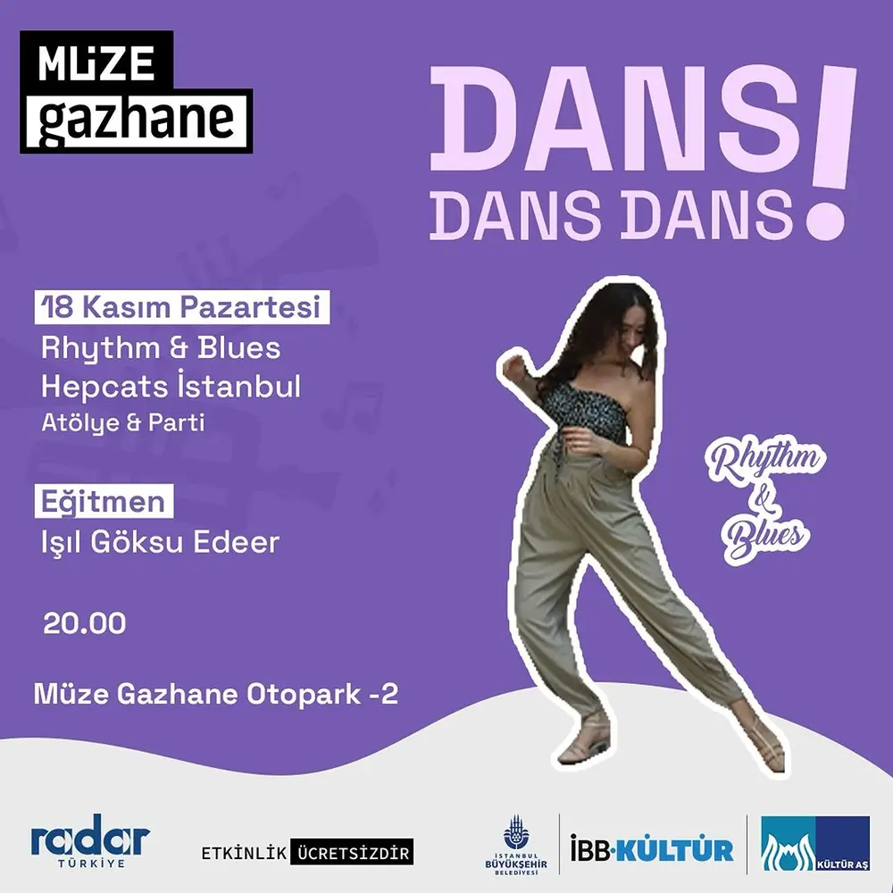 Etkinlik Konusu | Ritmin ve hareketin buluştuğu atölye Dans Dans Dans, 18 Kasım Pazartesi günü Müze Gazhane’de kaldığı yerden devam ediyor. Bu hafta eğitmen Işıl Göksu Edeer ile Rhythm & Blues atölyesi gerçekleşecek. |