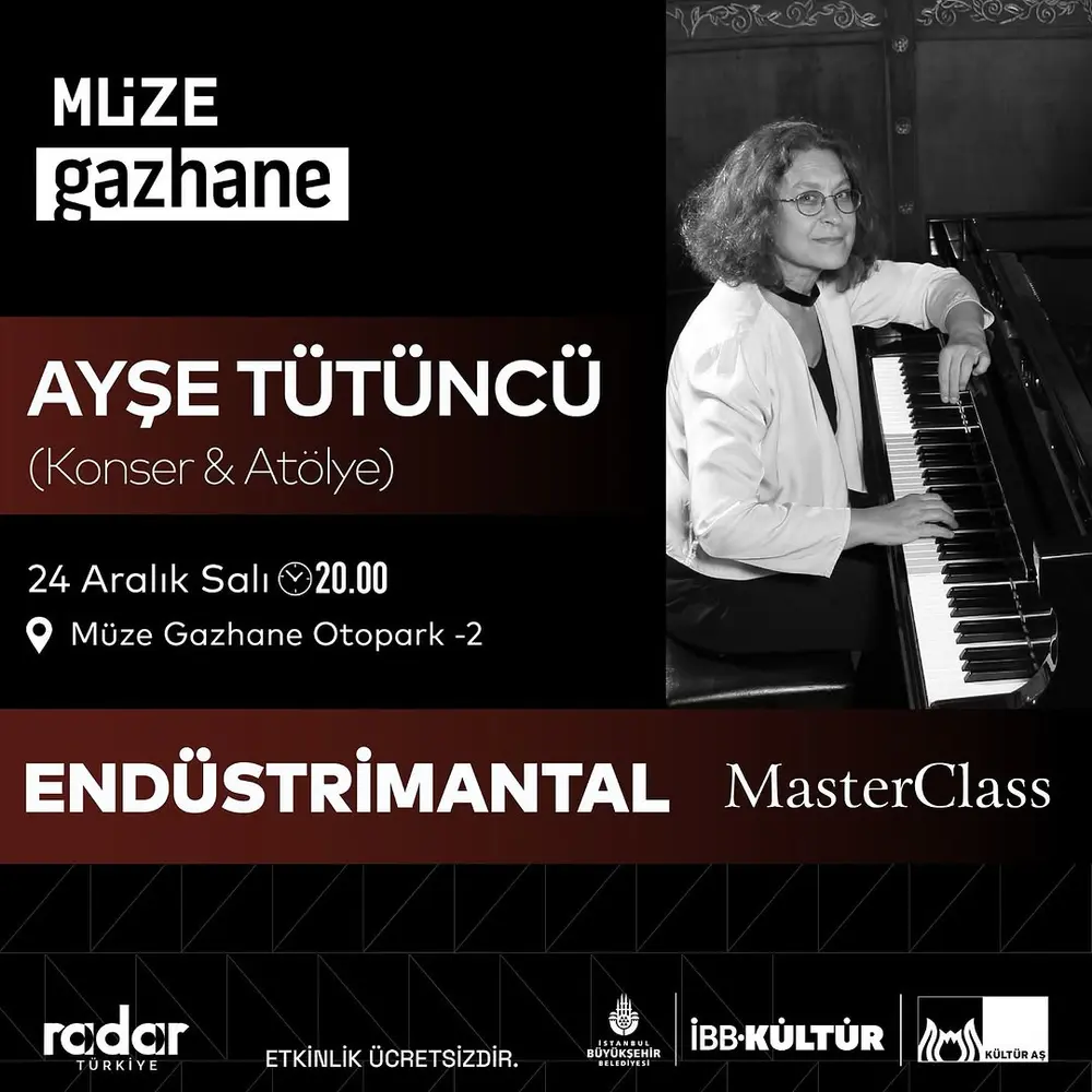 Etkinlik Konusu | Müze Gazhane’nin 130 yıllık endüstriyel hafızasını müziğin sınırsız dünyasıyla birleştiren Endüstrimantal MasterClass serisinin yeni konserinde piyanist-besteci Ayşe Tütüncü bizlerle olacak. Alto saksafon Meriç Demirkol ile sahneye çıkıp bizlere minik bir müzik ziyafeti yaşatacak olan Tütüncü, merak ettiğimiz soruları da yanıtlayıp, müzisyenlik mesleği, kültür, besteleme ya da sahnede çalma gibi müziğin farklı hal ve durumlarını müzikseverlere aktaracak. |