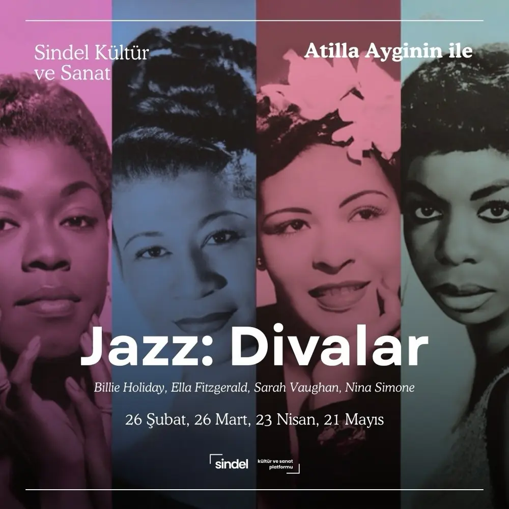 | Etkinlik Konusu | Sindel Kültür ve Sanat Platformu'nda caz müziğinin büyük divaları ile tanışmaya hazır mısınız? Billie Holiday, Ella Fitzgerald, Sarah Vaughan, Nina Simone |