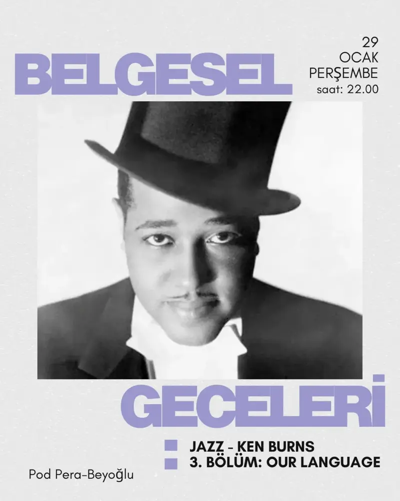 3. Bölüm 'Our Language' ile Jazz belgeselini izlemeye devam ediyoruz! 'Jazz' belgeseli, Ken Burns tarafından yönetilen 2001 yapımı on bölümlük bir televizyon belgesel mini dizisidir. Belgesel 1917'den 2011'e Cazın değişimini dönemin karmaşık iklimi ve Amerika'nın kültür bağlamı ile birlikte inceler. Louis Armstrong, Duke Ellington, Benny Goodman, Bix Beiderbecke, Fletcher Henderson, Charlie Parker, Sarah Vaughan, Count Basie, Dizzie Gillespie, Billie Holiday, John Coltrane ve Miles Davis gibi caz müziğin büyük isimleri ve hikayeleri de dizide yer almaktır. Keith David tarafından seslendirilmiş, günümüz müzisyenleri ve eleştirmenleriyle yapılmış ropörtajları içermektedir. |